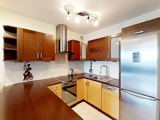 Kuchnia: lodówko-zamrażarka, zmywarka, okap, 4-palnikowa płyta