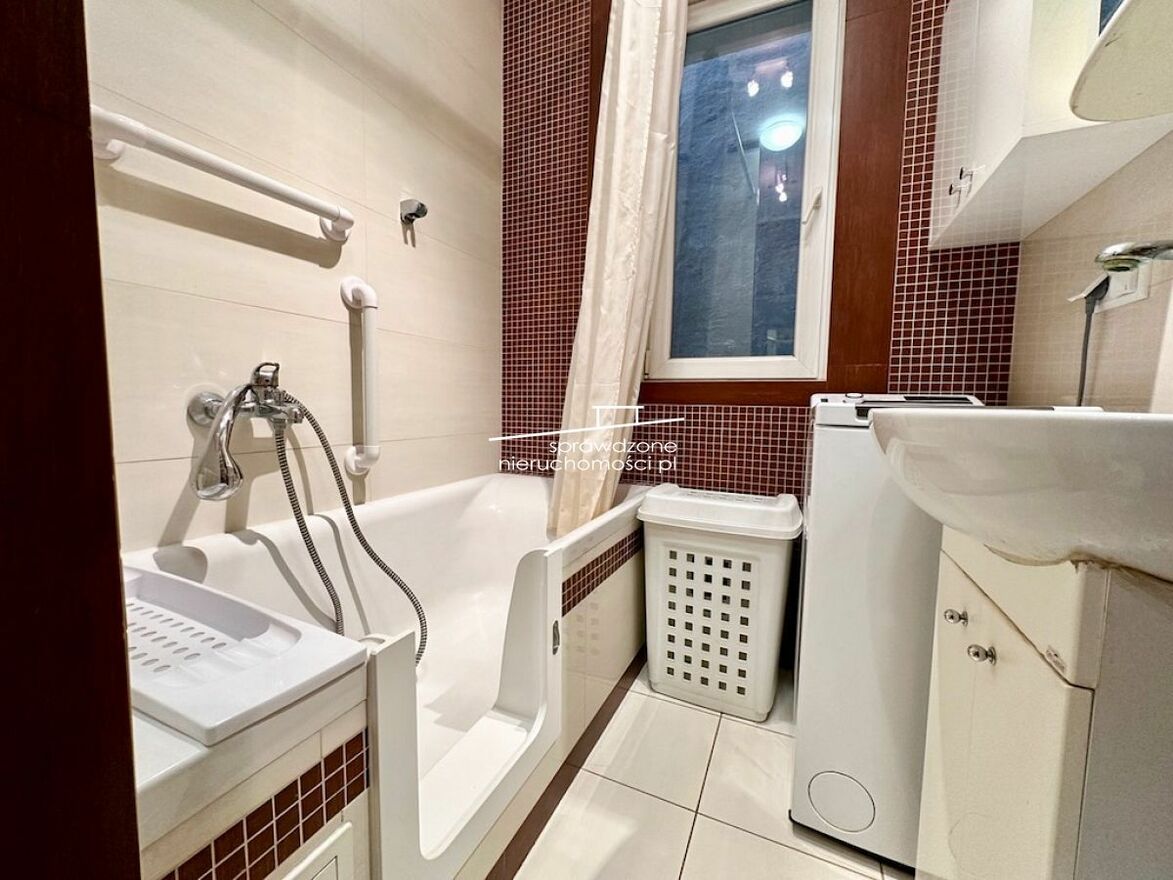 - Łazienka z oknem - kabina prysznicowa, WC, umywalka, pralka i wanna z drzwiami (!), grzejnik drabinkowy, lustro.