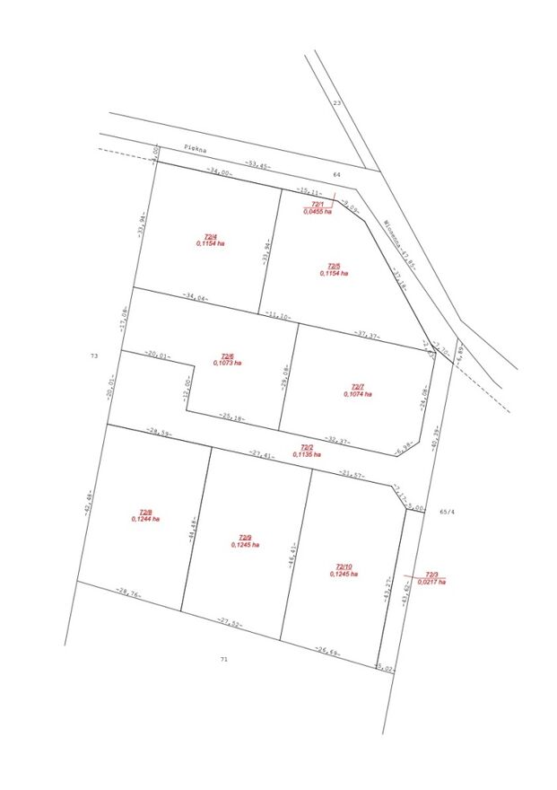72/5 - 1154 m2 – 115 398 brutto (promocja działka od strony ul. Wiosennej z dostęp do sieci wodociągowej bezpośrednio z drogi - brak składki 25 tys. ).