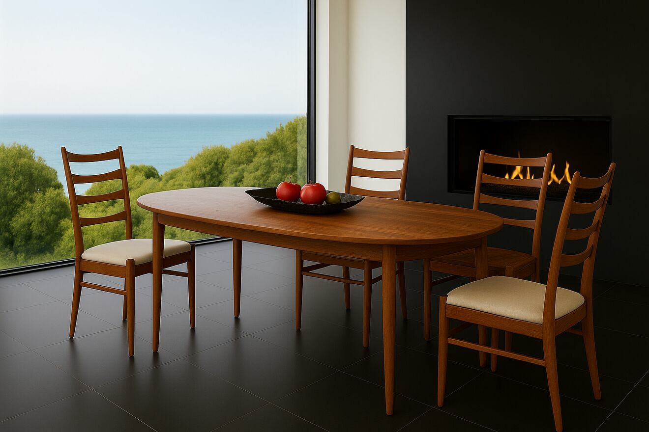 Krzesła tekowe z lat 60.marka Roche Bobois. Smukła, elegancka linia, wysokie oparcie ze szczebelkami i profilowane siedzisko. Klasyka mid-century modern inspirowana duńskim wzornictwem, która świetnie łączy się z nowoczesnymi wnętrzami. Lite drewno teak o pięknym rysunku i trwałej patynie. Stan b.dobry, konstrukcja sztywna. 500 zł/szt., dostępne 3 szt.Parametry kluczowe: teak, lata 60., styl MCM, szczebelkowe oparcie, sylwetka lekka i ponadczasowa.
