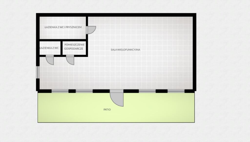 - Sala wielofunkcyjna - 43,75 m2 - idealna pod open space biurowy, studio zajęciowe lub gabinety indywidualne,