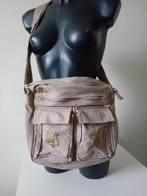 Torba na ramię w kolorze beżowym, używana. Idealna do codziennego użytku, pomieści wszystkie niezbędne rzeczy. Wygodna ...